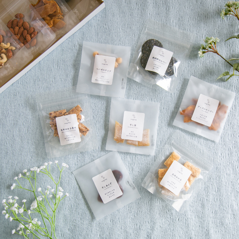 『心も身体も喜ぶ』をテーマに、厳選したおやつと健康茶のキットがポストに届きます。