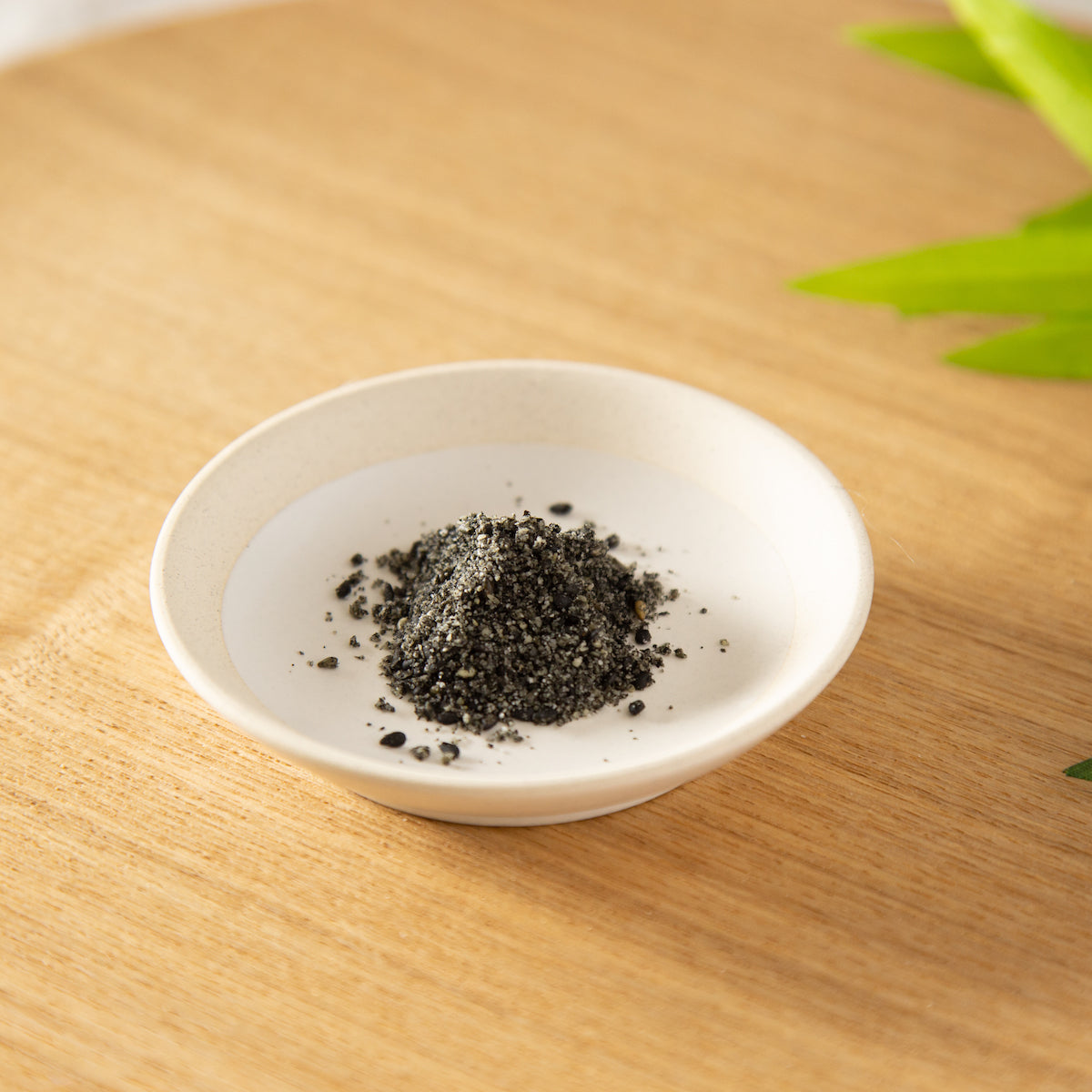 原材料:黒胡麻(ミャンマー、パラグアイ、ボリビア、メキシコ)、食塩(天塩)